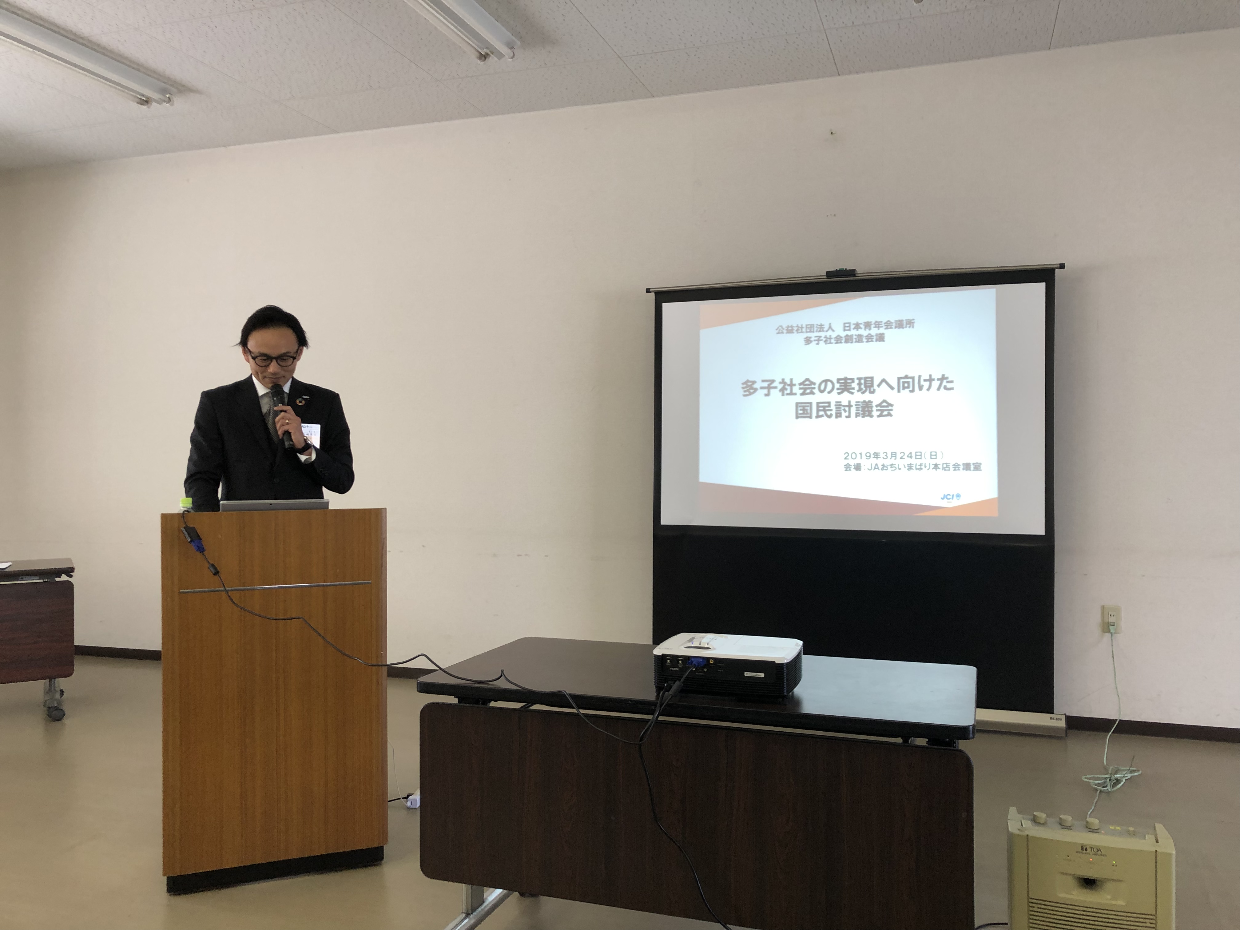 まずは、会議所前に多子社会の実現に向けた国民討議会。少子化の対策だけではなく、多子社会の実現に向けた討議。発想の転換、面白い。考え方ひとつである。